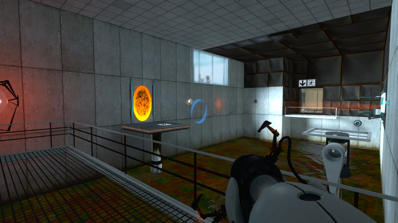 When you notice the corridor, the entire thing doesn’t make any sense to you. The character and the player have no motivation to walk that way. You simply walk that way because that’s the only way you can walk. You get high up on a platform not because the character wants to, but simply because that’s where the only surface that accepts portals is.