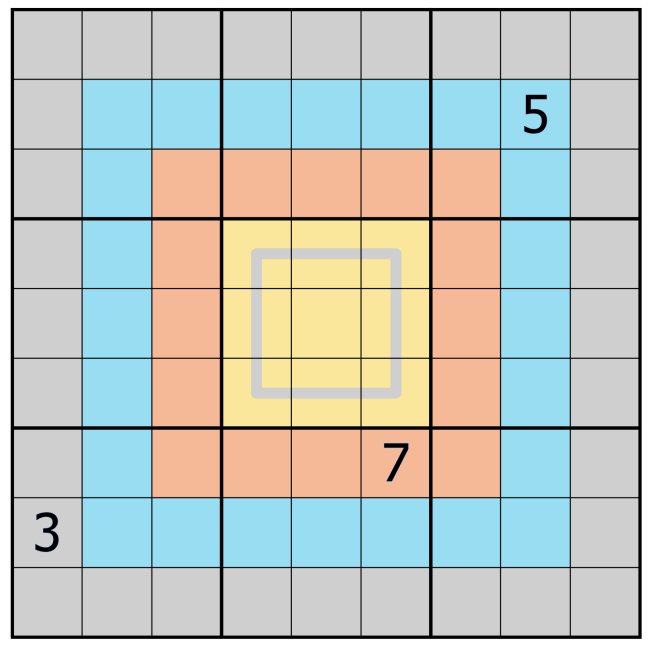 The contents don’t really matter, we’ll just use this board to explain the ring. The thing we’ll prove is that if in the picture below the 16 digits that make up the blue ring are identical to the 16 digits that make up the orange squares: